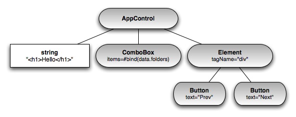 To generate the HTML that the user sees, the Control Hierarchy is "rendered" by the page renderer, converting it into a tree of DOM nodes. In Jitsu, DOM nodes only contain the final rendered HTML the user sees - all interactivity and application logic are held in the Control Hierarchy.
